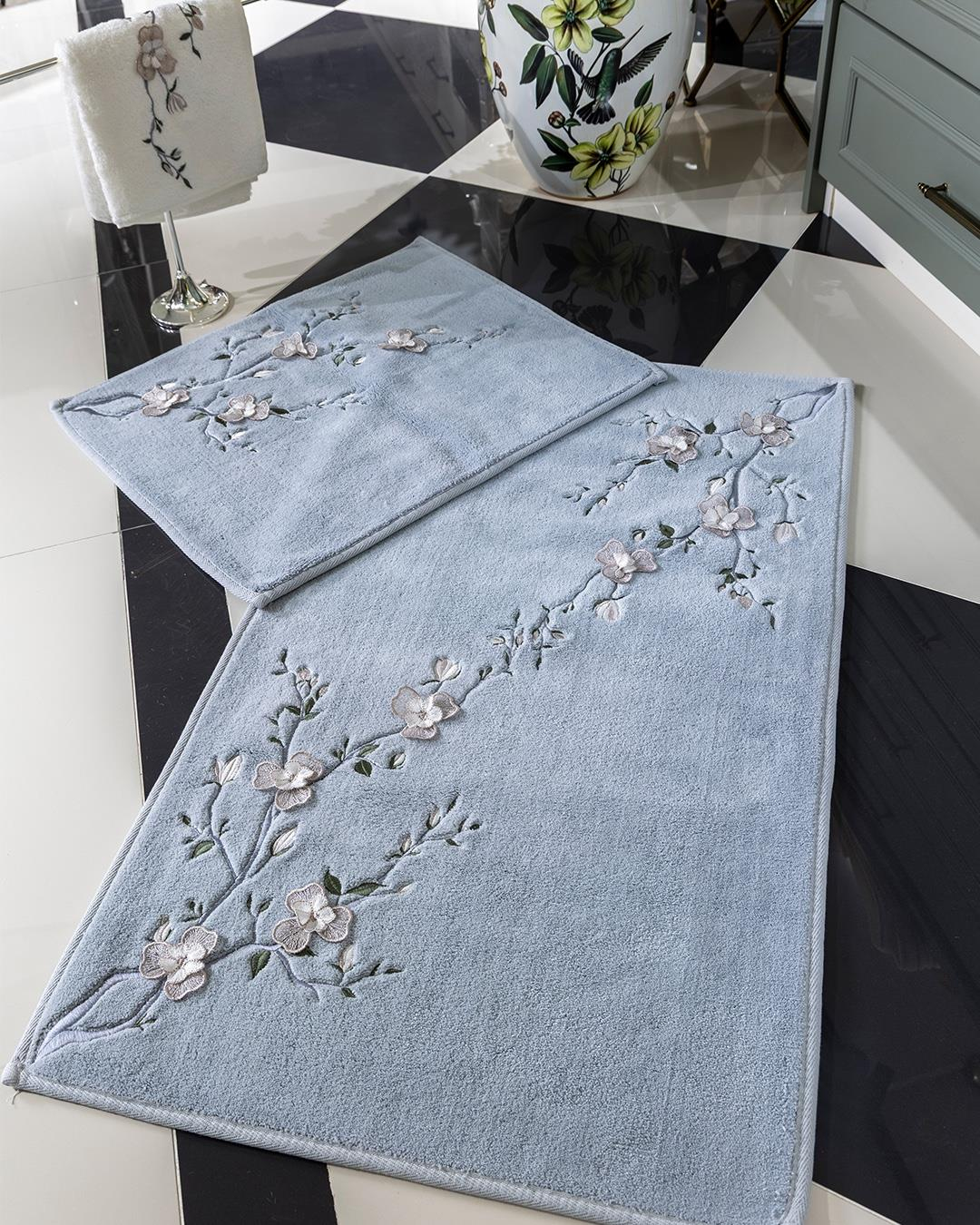 Gri Dikdörtgen Bahar Dalı Model Paspas Seti %100 pamuk ipten üretilmiştir.