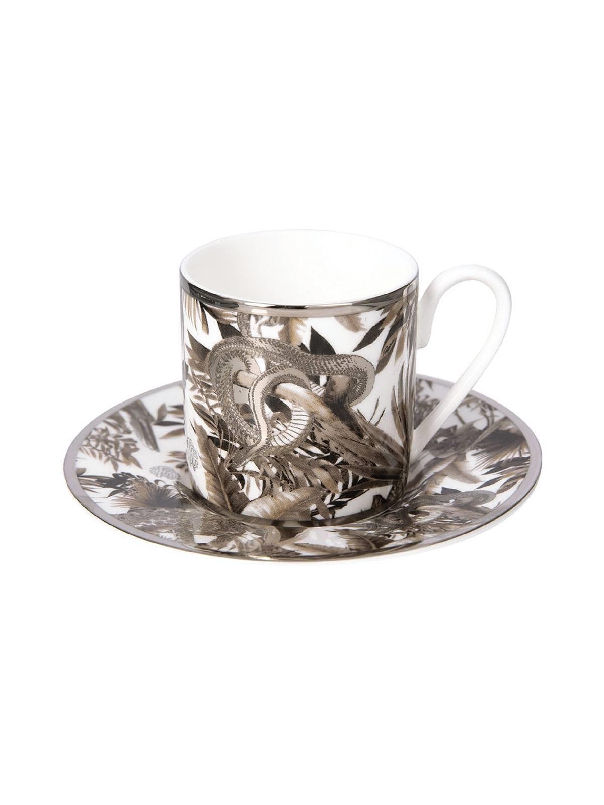 ROBERTO CAVALLİ – TROPİCAL JUNGLE WHİTE – COFFEE CUP & SAUCER – CYLINDRIC SHAPE (6PCS)